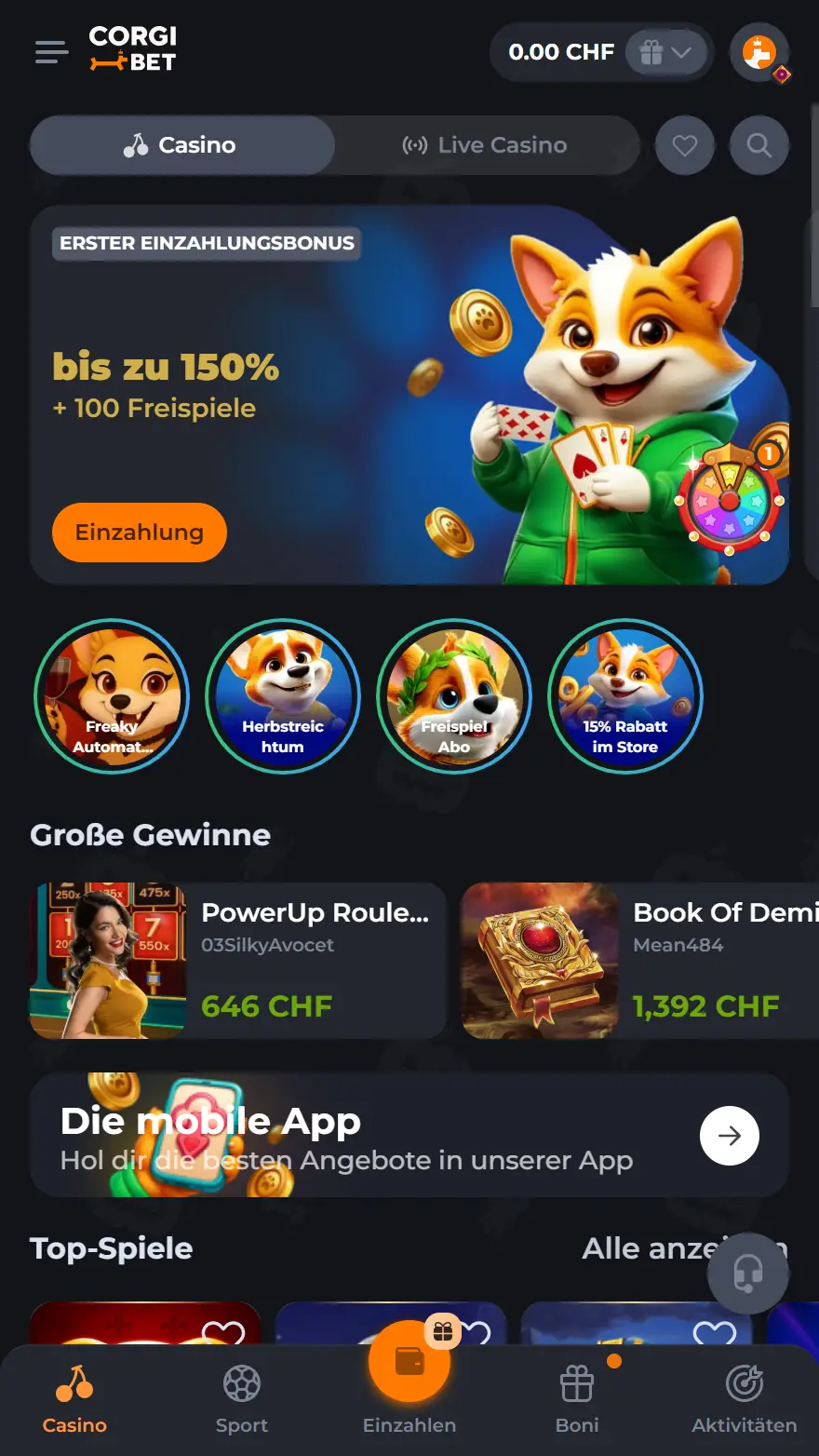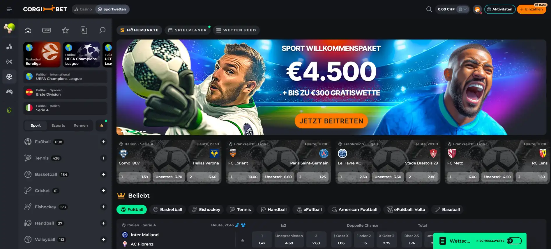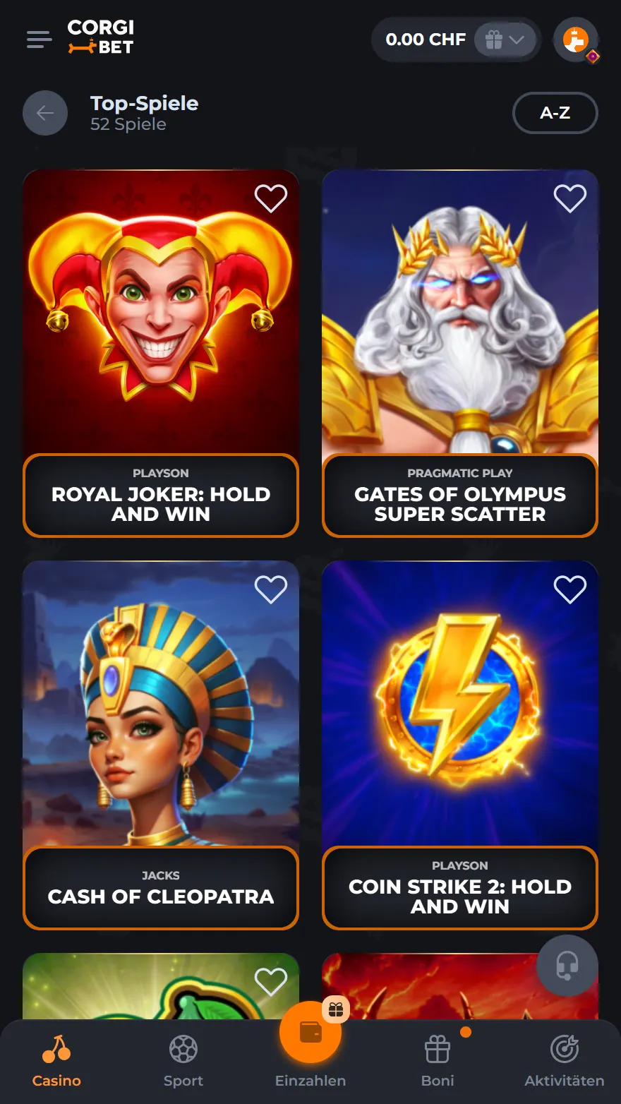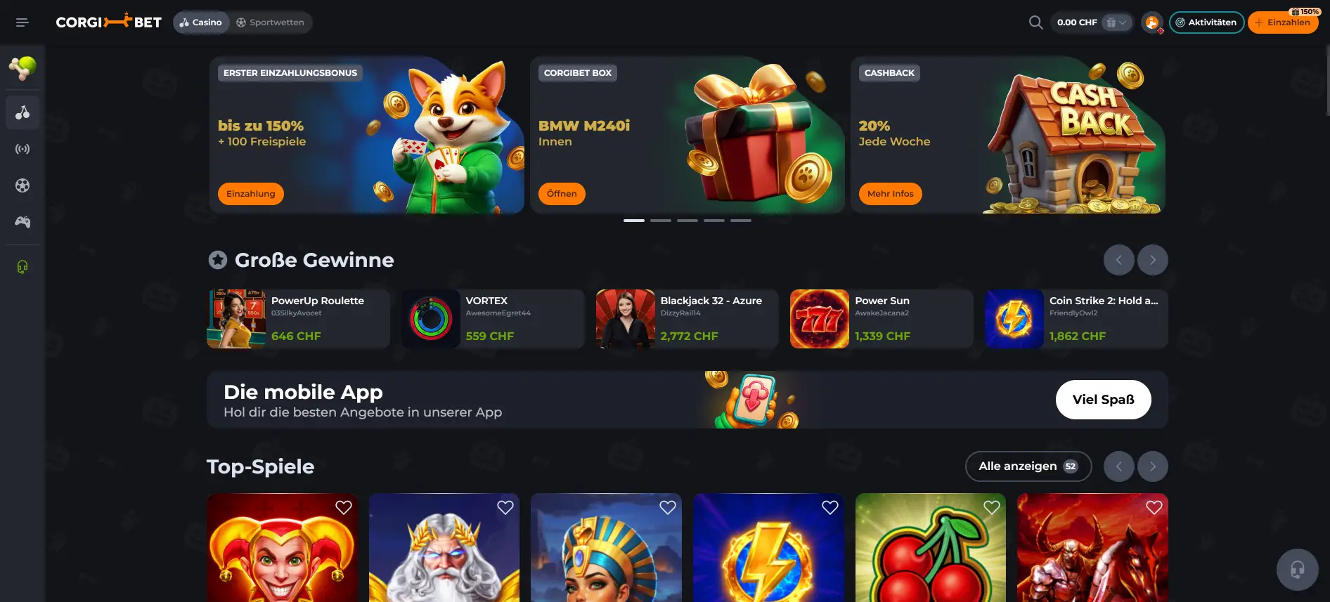 Mit über 6’000 Spielen und blitzschnellen Auszahlungen gehört CorgiBet Casino zu den modernen Online-Casinos, die Technik und Spielerkomfort vereinen. Hinter der Seite stehen erfahrene Branchenprofis, die wissen, worauf Schweizer Spieler Wert legen – faire Spiele, Sicherheit und erstklassige Software von Amatic, Betsoft oder Endorphina. Ob Live-Casino, progressive Jackpots oder attraktive Boni – hier ist für jeden Geschmack etwas dabei. Der Support ist rund um die Uhr erreichbar und sorgt dafür, dass alles reibungslos läuft.