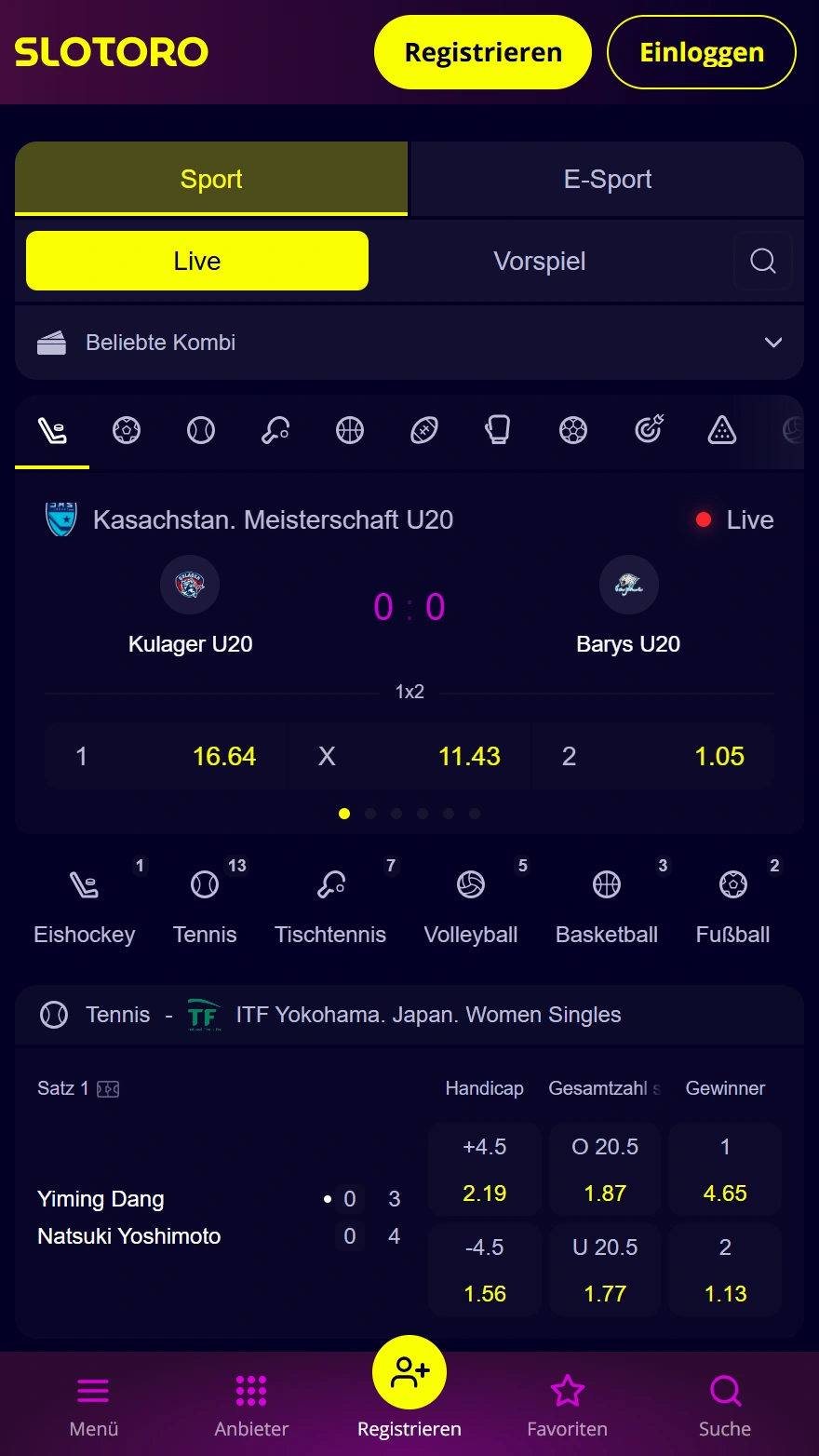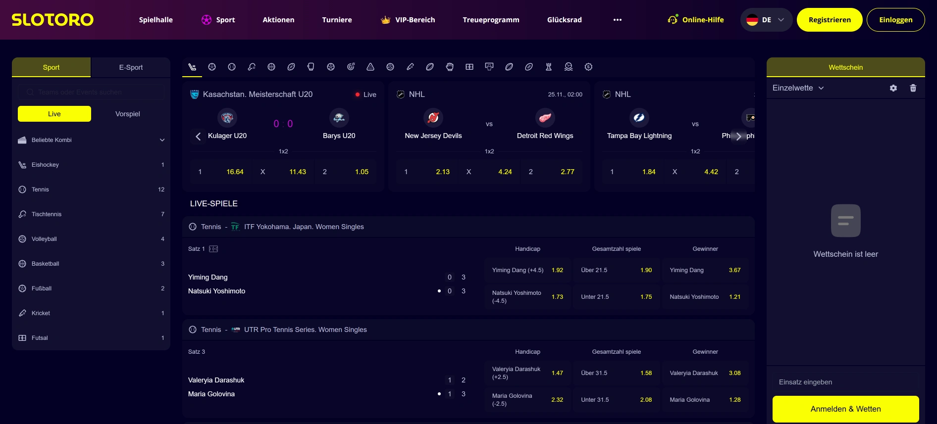 Sportwetten sind verfügbar
